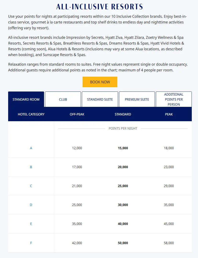 Hyatt also allows for the flexibility of booking directly into club rooms, suites, and premium suites without charging an arm and a leg. Unfortunately, the one exception to the award charts are Mr and Mrs Smith properties. Their redemptions are dynamic and usually mirror close to cash value, or 1 cent per point. For more information on how much hotel and all inclusive club rooms, suites, and premium suites cost, visit Hyatt's website.