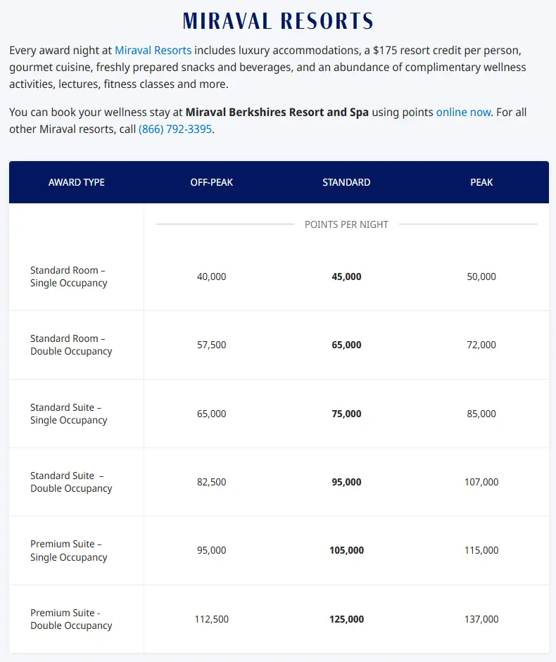 All inclusive will fall into a different award chart, with the Miraval
